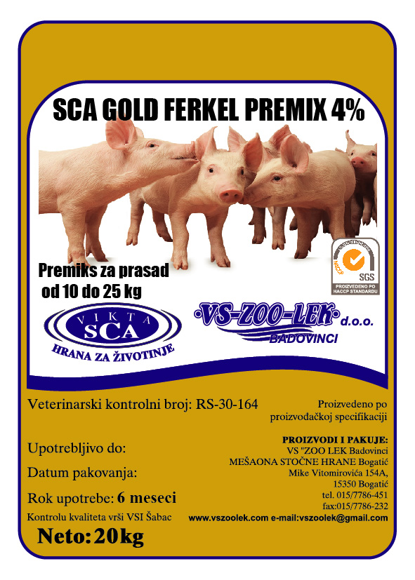 SCA GOLD FERKEL 4% PREMIKS 4kg – za prasad od 10 do 25kg